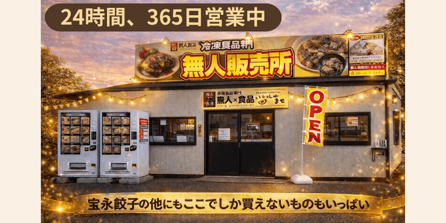 冷凍食品専門の無人販売所「無人食品」を岩見沢市6条東2丁目13番地(大和商会駐車場内)にて営業しております。
